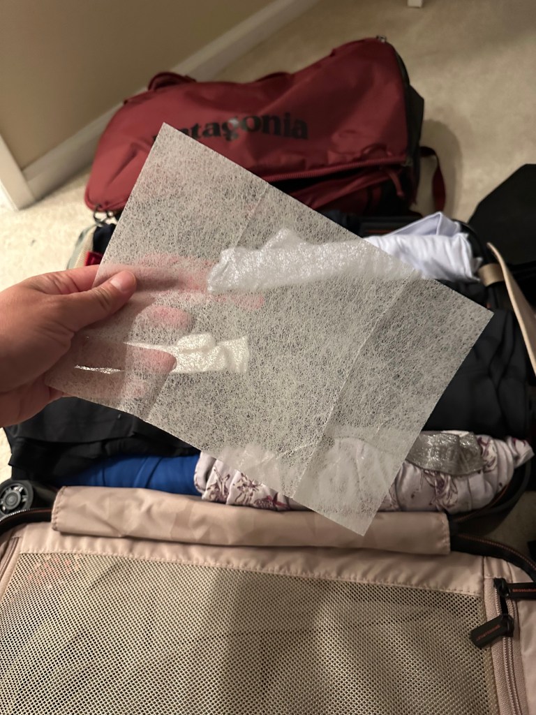 I usually mix it. If you want to bring more shirts or undershirts and leggings, then I would roll it because it gives me more space. For underwear, I use the compression packing cubes. I also bring 2(two) pair of jeans. One I wear already on the way to the destination and one I can fold and put it on top of my rolled clothes or I can simply roll it too. I bring 2 (two) jackets. One I can wear already, preferably, puff lite jacket and the other one waterproof. I would just fold this and put it on top of my rolled clothes as well. One set of pajama is good enough or any old clothes you can use as pajama and you can simply toss it after your trip and that leaves more room in your luggage for new things you want to take home. I also put dryer sheets in between clothes to keep my clothes smelling fresh.