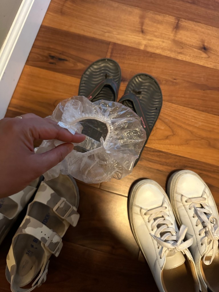 Hotel – as soon as I get to my hotel room, I wipe everything I know I will touch. Door knobs of your room door, bathroom doors and shower doors. I also wipe all the light switches, faucet knobs, window/curtain handles and the room phone. I try to avoid using the phone but if I must then I use the speaker option. I also, sanitize spray the curtains, the bed and pillows and couch/chairs. I pack my own travel blanket and sheet. Then I always wear the hotel slippers. Again, this is just by preference